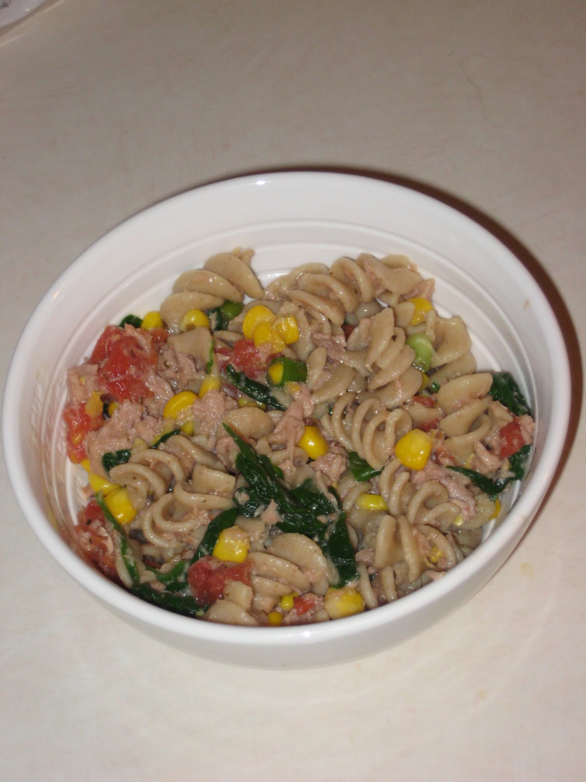 Put pasta, tuna, and all veggies in a bowl