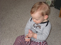 Okay so Caleb is now nine months old and we are begging the stages of self feeding. I have not gotten tons of use from this set yet as they are a little wide for his mouth but I know when he begins using a fork and spoon this will be the set to have. I love the green grips on this set and it really helps little hands keep a hold of the silver wear. I also love the little holes in the utensils as when he starts eating cereal or anything with liquid it will help with the runny mess all over the place. At $4.49 you can't beat this set!
