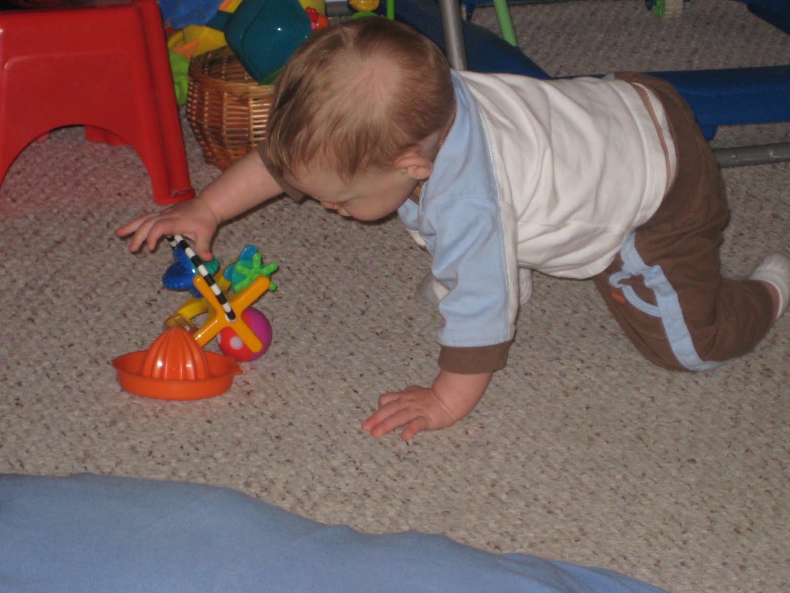 Catch & Release Net (6 Months & Up) Inspire Exploration: This toy helps baby build hand-eye coordination as he works to scoop brightly colored sea creatures into the little net. The fishing net is made of textured, blue plastic with nubby bumps on the handle to improve baby’s grip and a round ball at the end for gripping and mouthing. Three friendly creatures with smiling, symmetrical faces and textured bodies float on the surface, making them easier for baby to catch. Suggested retail price is $4.99 for the 4-piece set.